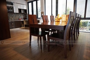 Bàn ăn nội thất gỗ óc chó với phong cách hiện đại phù hợp cho không gian phòng ăn chung cư hoặc biệt thự